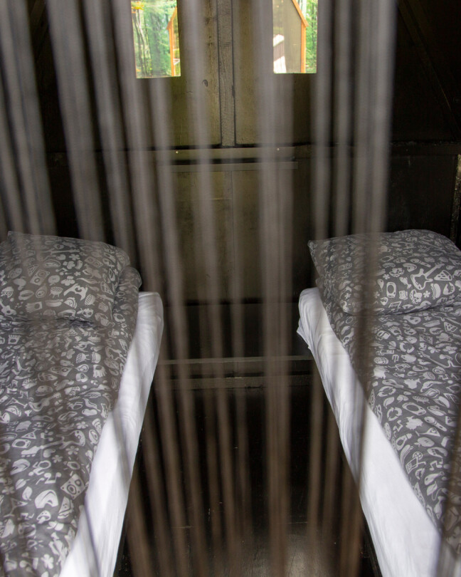 Hvis man blander festivalbolig med luksus, får man et LuksHus. Hvis I bor i sådan et, I heldige asener, så ser I frem til en uge i helt egen hytte med veranda, hvor I passende kan skåle velkomstbobler, når I er flyttet godt ind. I det dejlige hus er der både madrasser, dyner, puder og linned til to personer, et spejl at smukkesere sig i, eller bare tjekke om håret stadig sidder godt. I villaen finder du også indlagt strøm og lys, så telefonerne kan lades op til en ny dejlig dag i bøgeskoven.