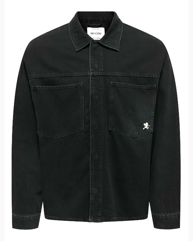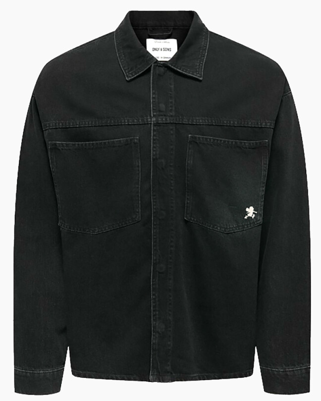Denne sorte denim overshirt fungerer perfekt som let jakke eller lag-på-lag over din yndlingstee. Med store frontlommer og et diskret broderet Walther-ikon.